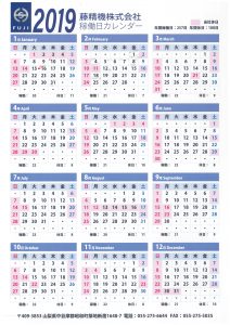 The 2019 work calendar is now available. Pink days are holidays and white days are regular work days.